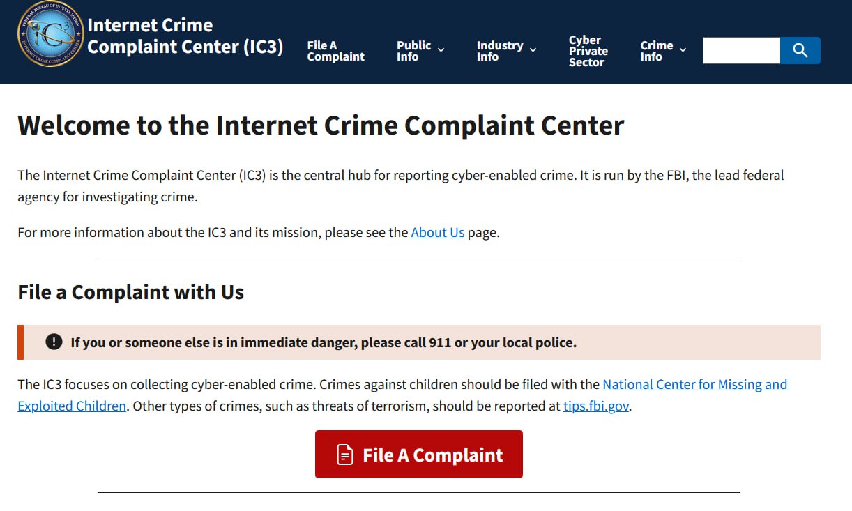 Understand the importance of filing a report with the FBI’s Internet Crime Complaint Center (IC3) and how it supports future legal actions and forensic investigations.